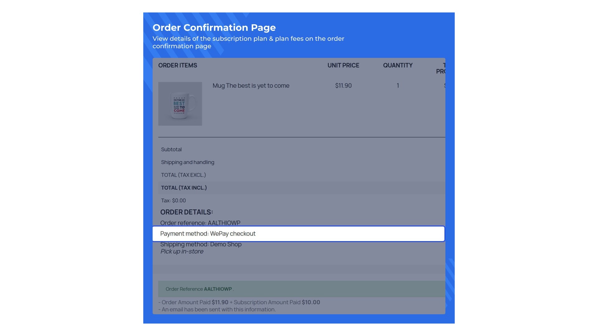 - Zákazníci mohou vidět podrobnosti o předplatném na stránce potvrzení objednávky.