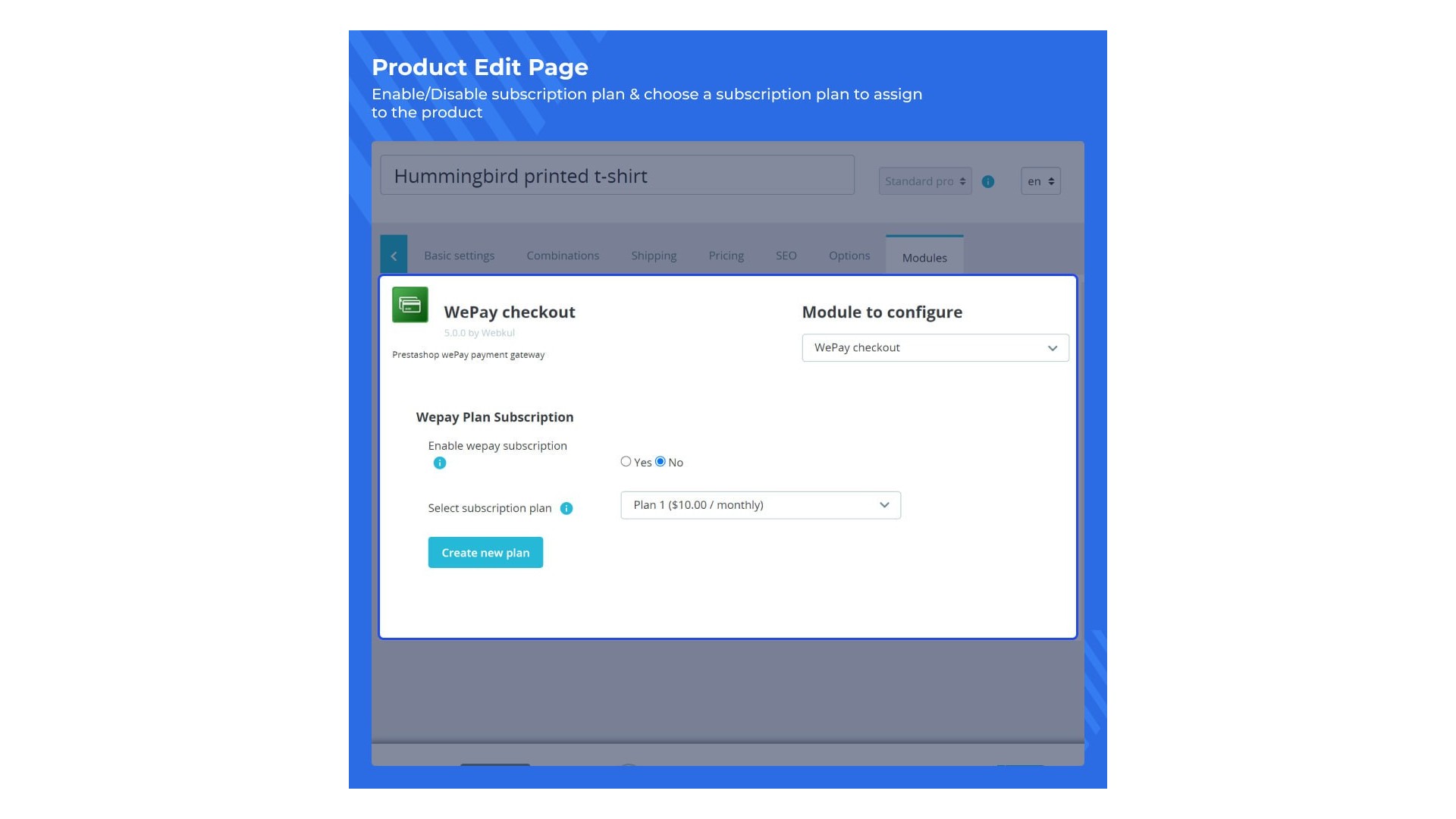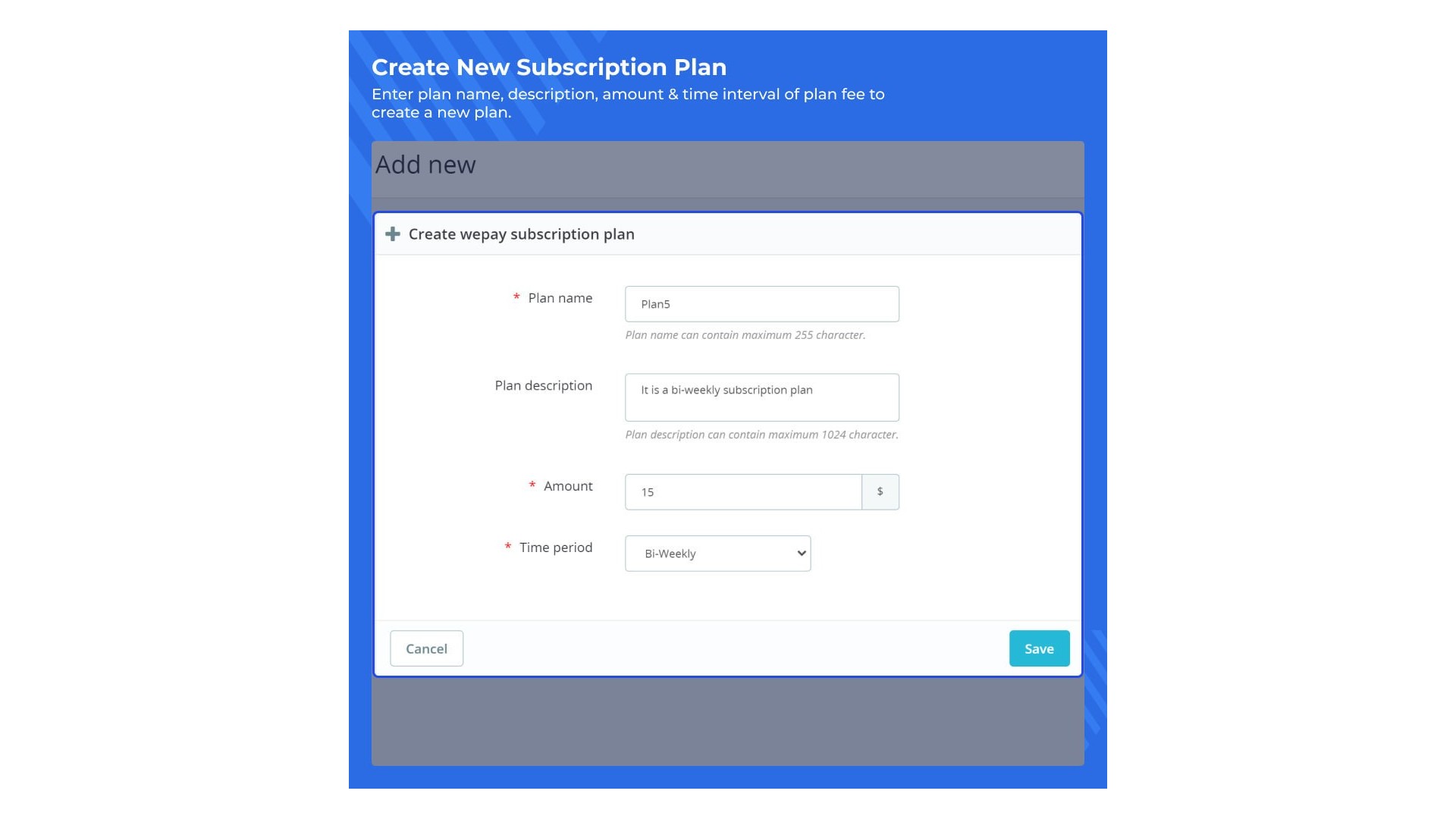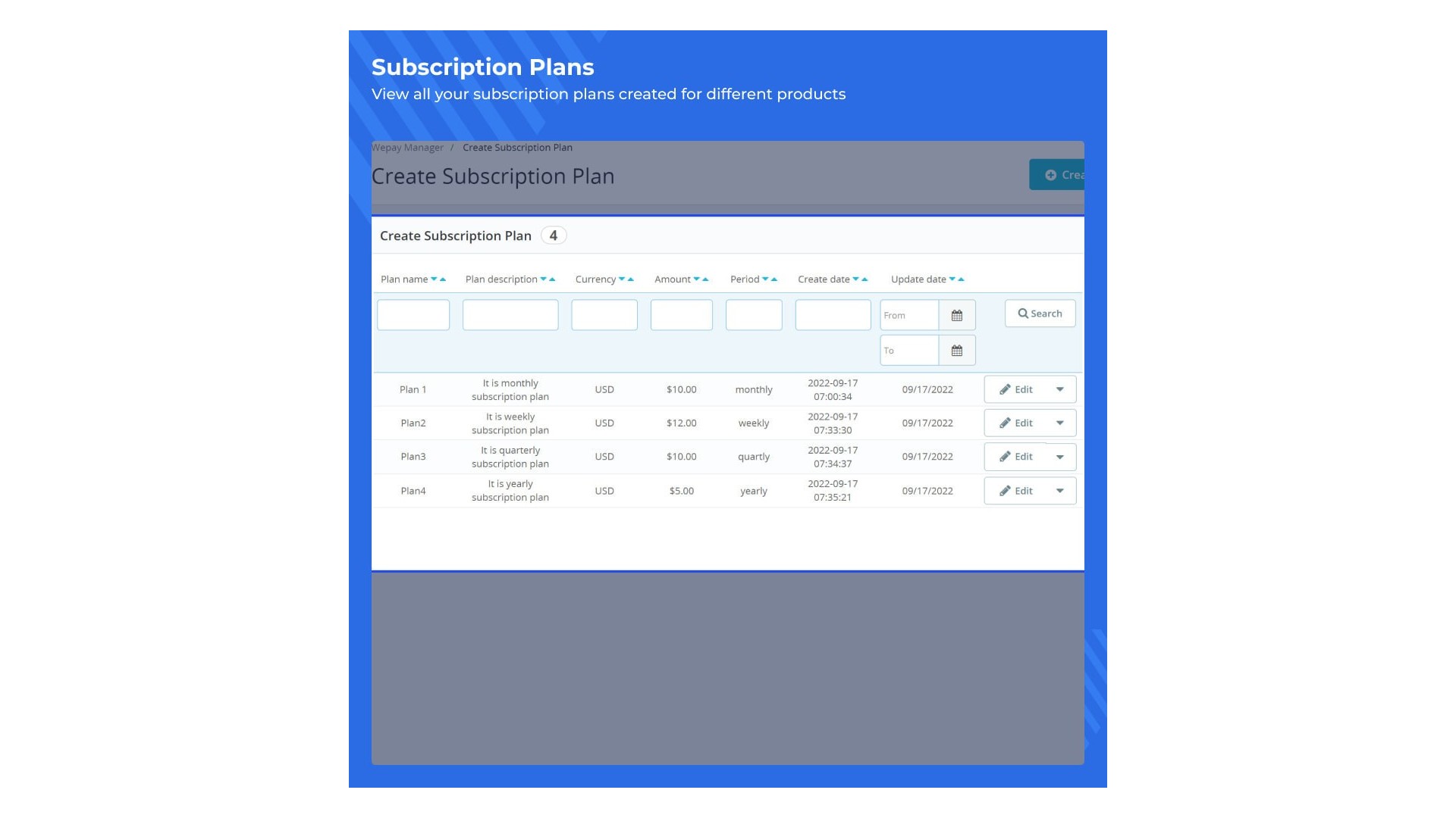 - Možnost vytvářet různé předplatné plány WePay.