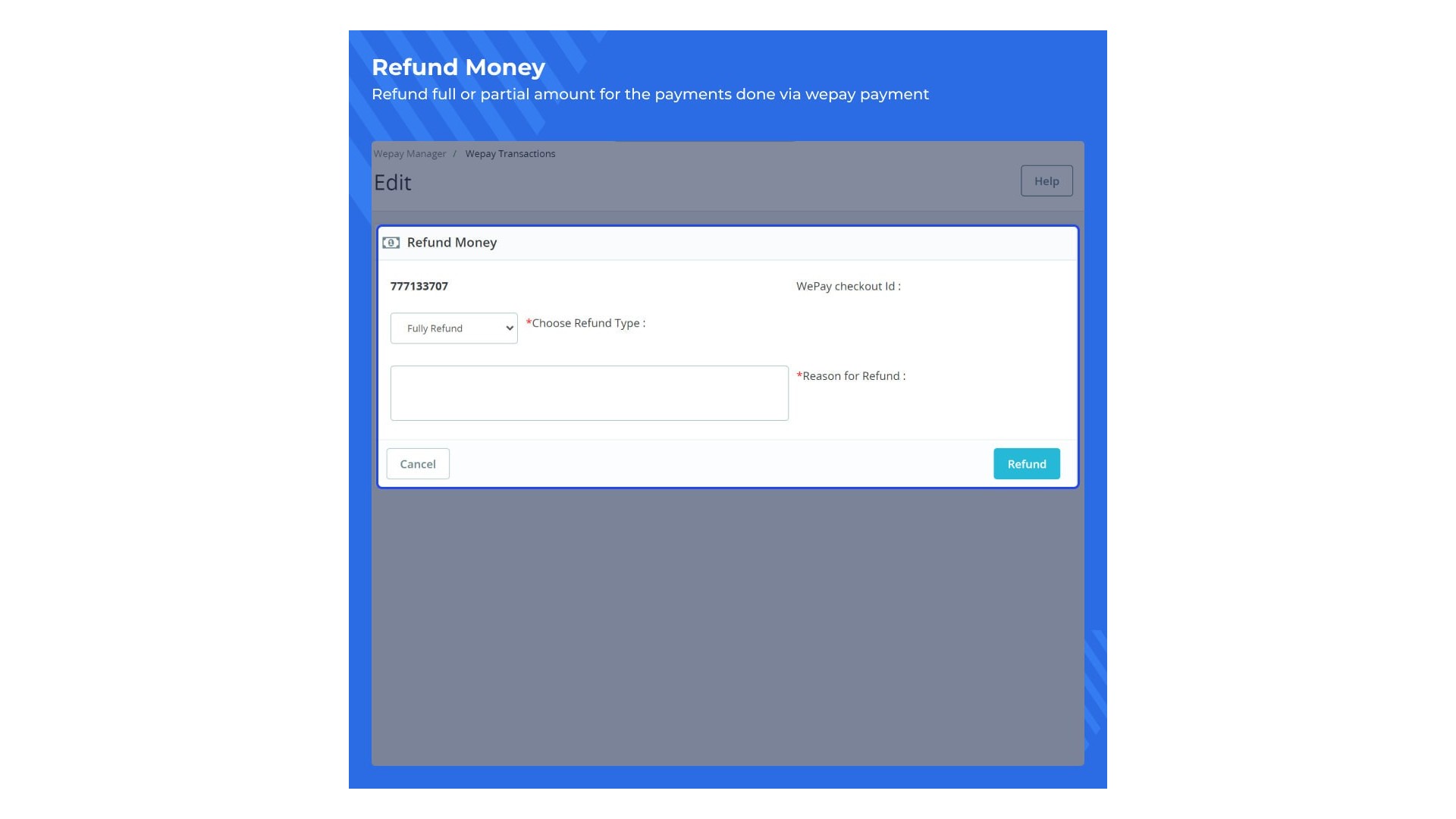 Funkce také umožňuje majitelům obchodů spravovat vrácení peněz přímo z rozhraní. Existují dva způsoby, jak zpracovat vrácení peněz: