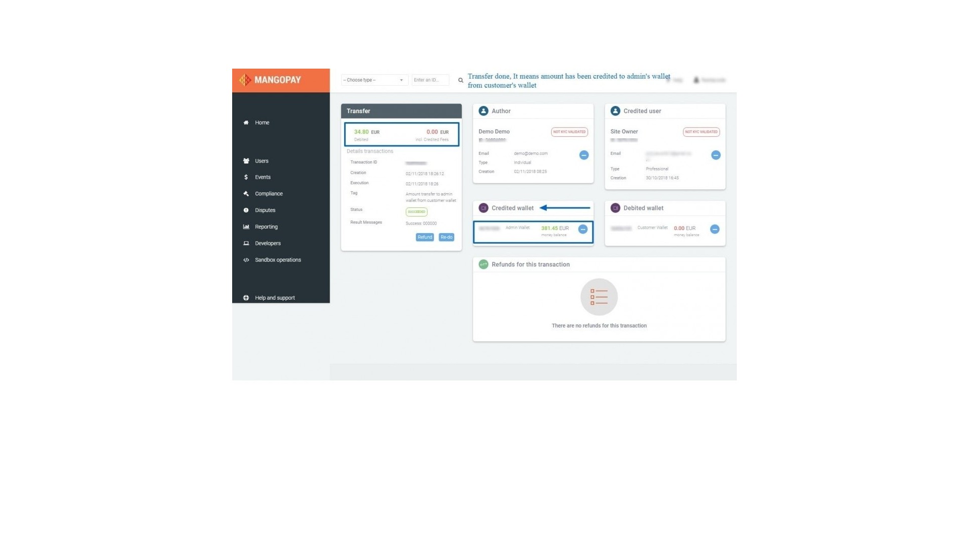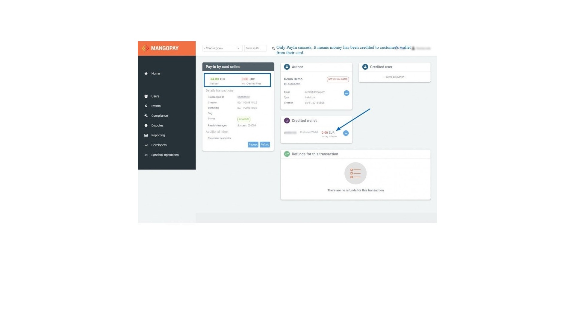 - Možnost zobrazení detailů transakcí přímo na účtu Mangopay.