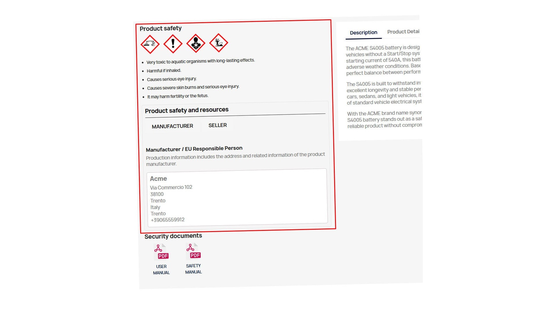 GPSR Manager zajišťuje snadnou shodu s evropskými bezpečnostními předpisy a poskytuje jasné informace o bezpečnosti produktů. Díky přehledným ikonám a strukturovaným stránkám si zákazníci rychle ověří možné rizika a důvěřují správnosti informací. Tato funkce tak zlepšuje celkový zážitek z nakupování a zvyšuje transparentnost nabízených výrobků.