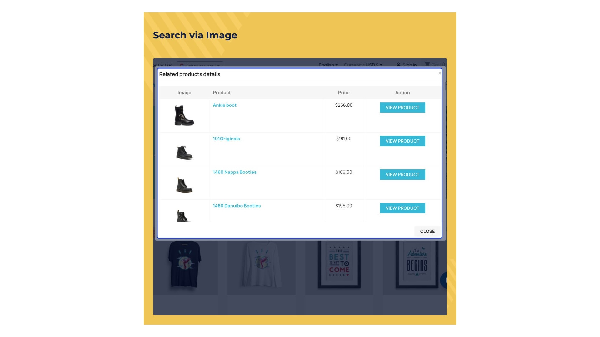 - Umožňuje zákazníkům vyhledávat produkty pomocí nahraných obrázků.