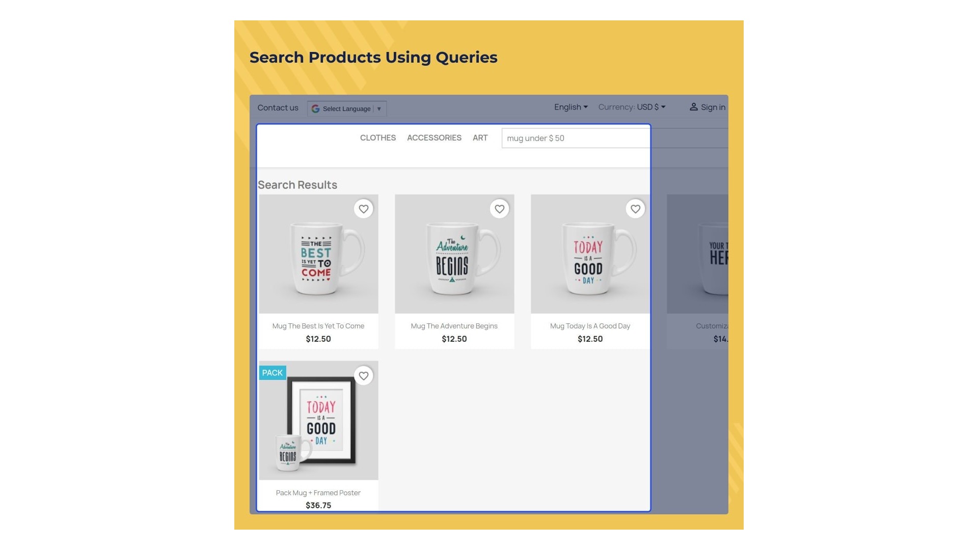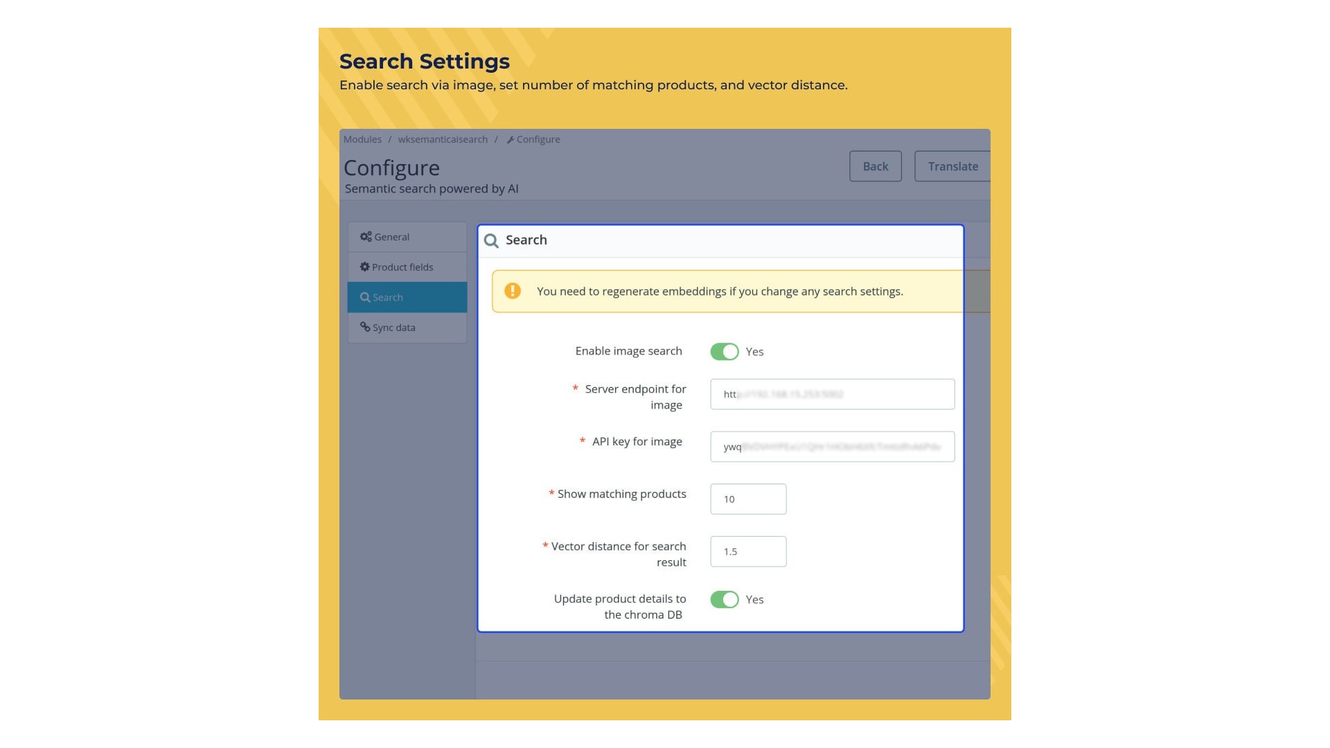 Zefektivněte vyhledávání produktů na svém webu s funkcí AI pro vyhledávání obrázků a sémantiky. Umožněte svým zákazníkům snadno najít relevantní produkty pomocí jejich dotazů nebo nahraných obrázků, a to s personalizovanými doporučeními, která berou v úvahu kontext jejich vyhledávání. Tato funkce zaručuje, že zákazníci rychle objeví to, co skutečně hledají.
