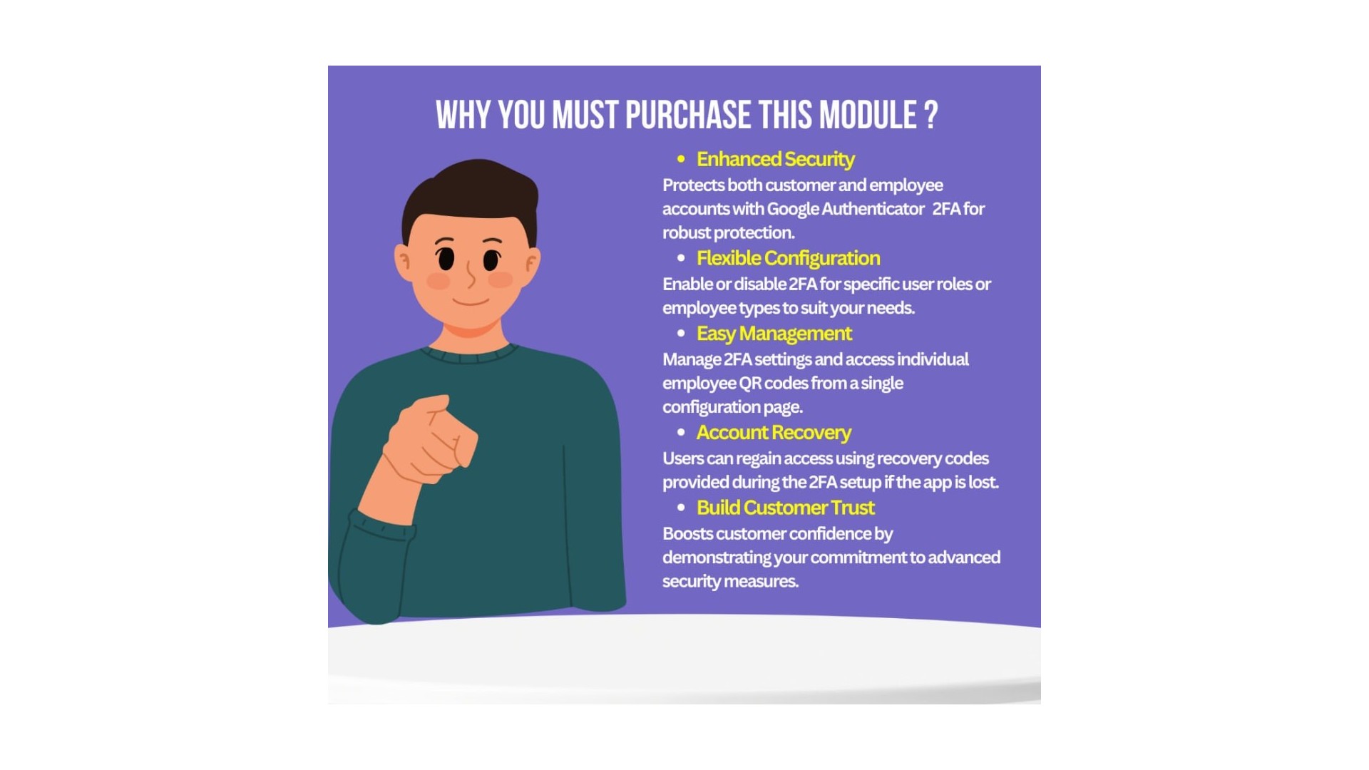 - Flexibilní aktivace: Možnost aktivovat dvoufaktorovou autentizaci pro zákazníky, administrátory, nebo pro jednu skupinu podle potřeb vašeho obchodu.