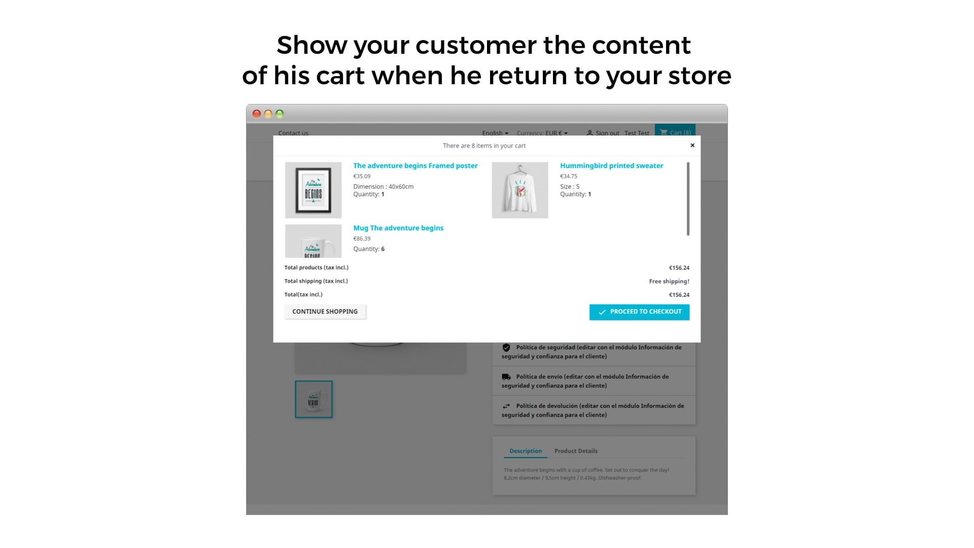 Chcete povzbudit své zákazníky, aby dokončili své nákupy? Zobrazte obsah košíku svým zákazníkům, aby si vzpomněli, že při poslední návštěvě zanechali některé položky přidané do košíku!