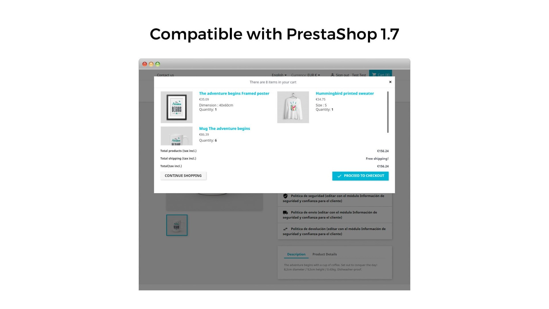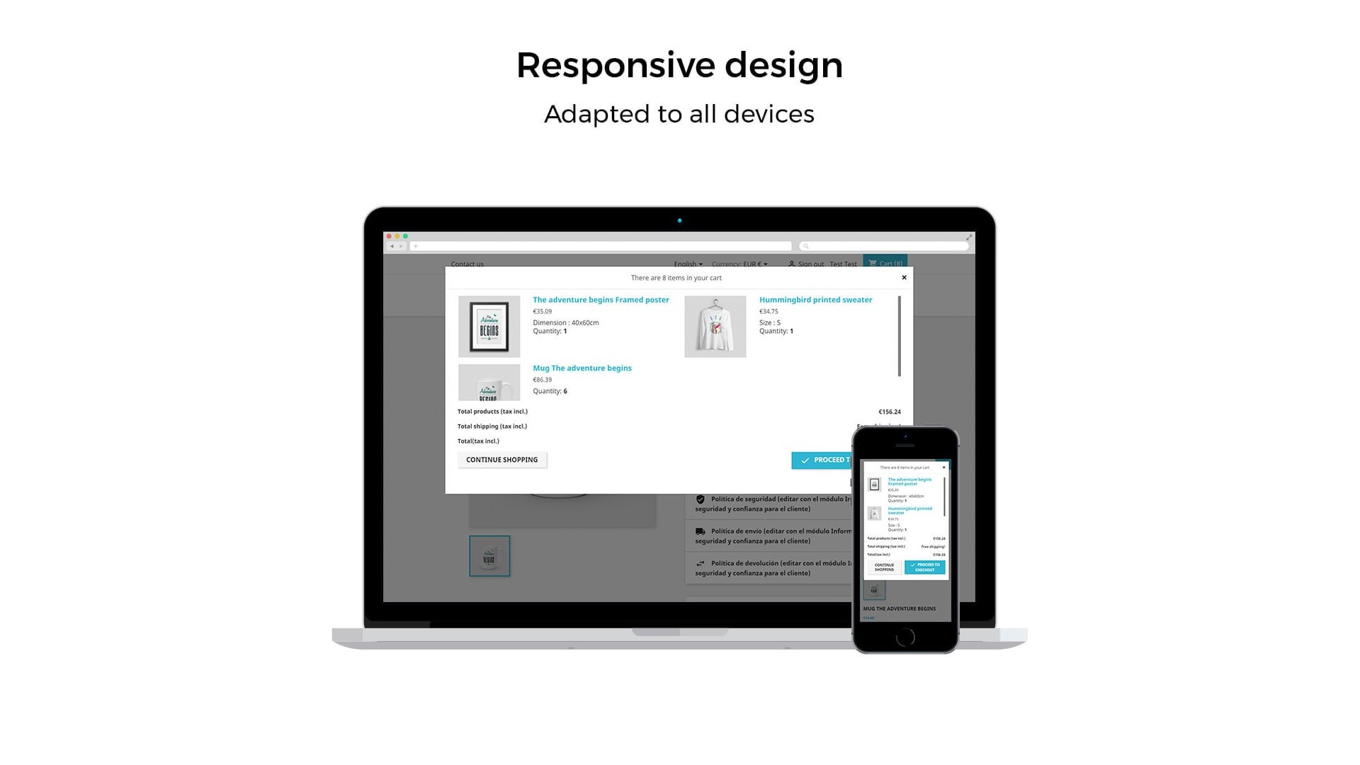 - Responsivní design: Bez ohledu na to, zda se zákazníci dostanou do vašeho obchodu prostřednictvím desktopu nebo mobilu, bude zobrazený košík přizpůsoben všem zařízením.