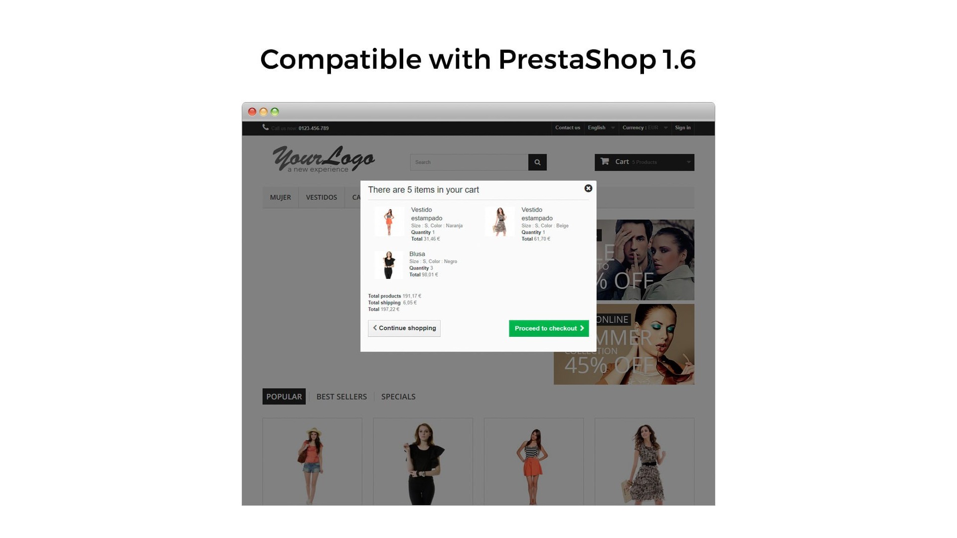 Umožněte svým zákazníkům snadno dokončit nákupy připomínáním obsahu jejich nákupního košíku prostřednictvím elegantního a responzivního pop-up okna. Můžete si přizpůsobit frekvenci zobrazení tak, aby nebyli obtěžováni, a to jak na desktopu, tak na mobilních zařízeních. Funkce je kompatibilní se všemi tématy a dalšími nástroji ve vašem obchodě, což zajišťuje bezproblémový zážitek pro každého zákazníka.