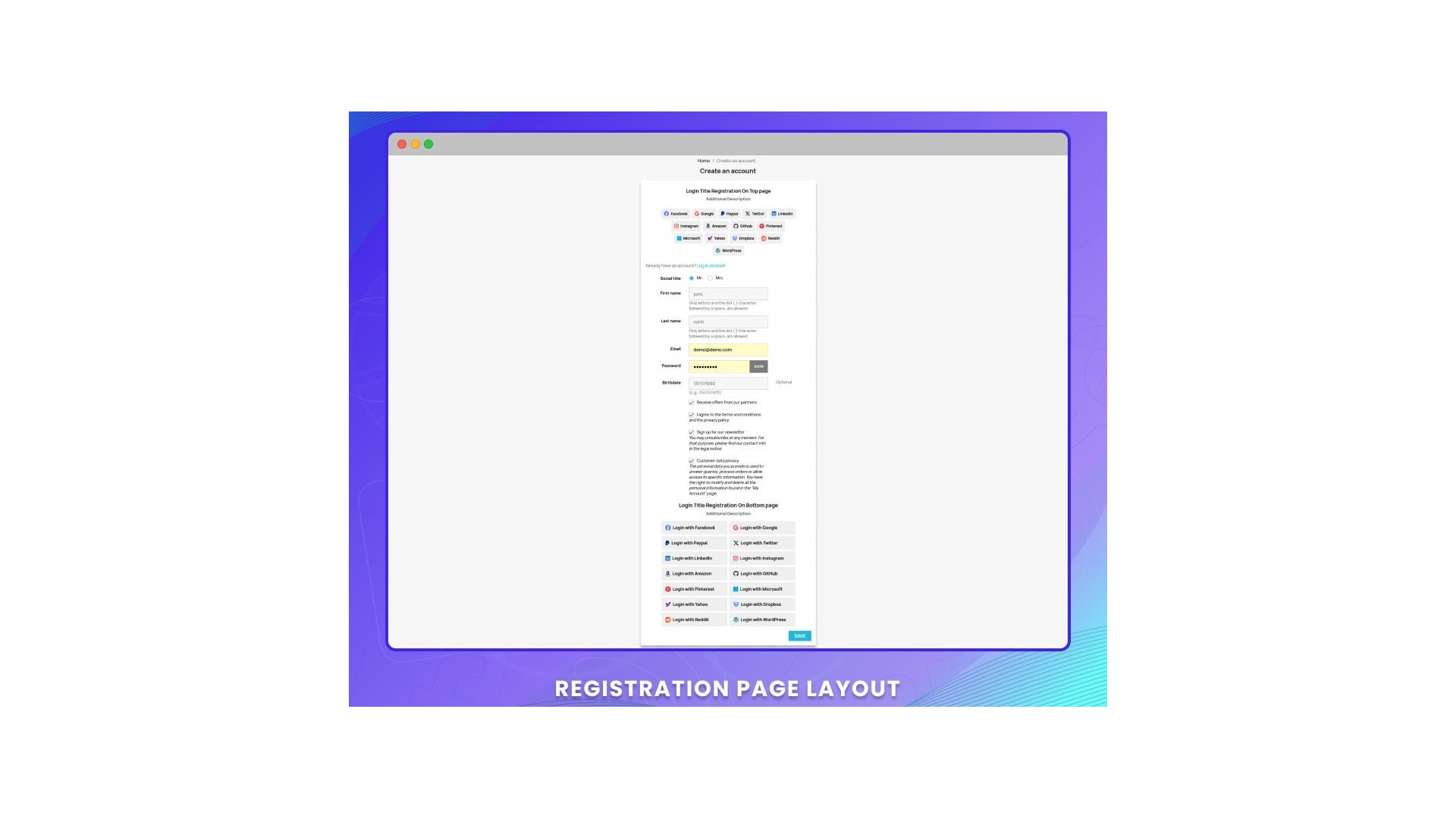 Chytré sociální přihlášení 14 v 1 s analýzou a designem