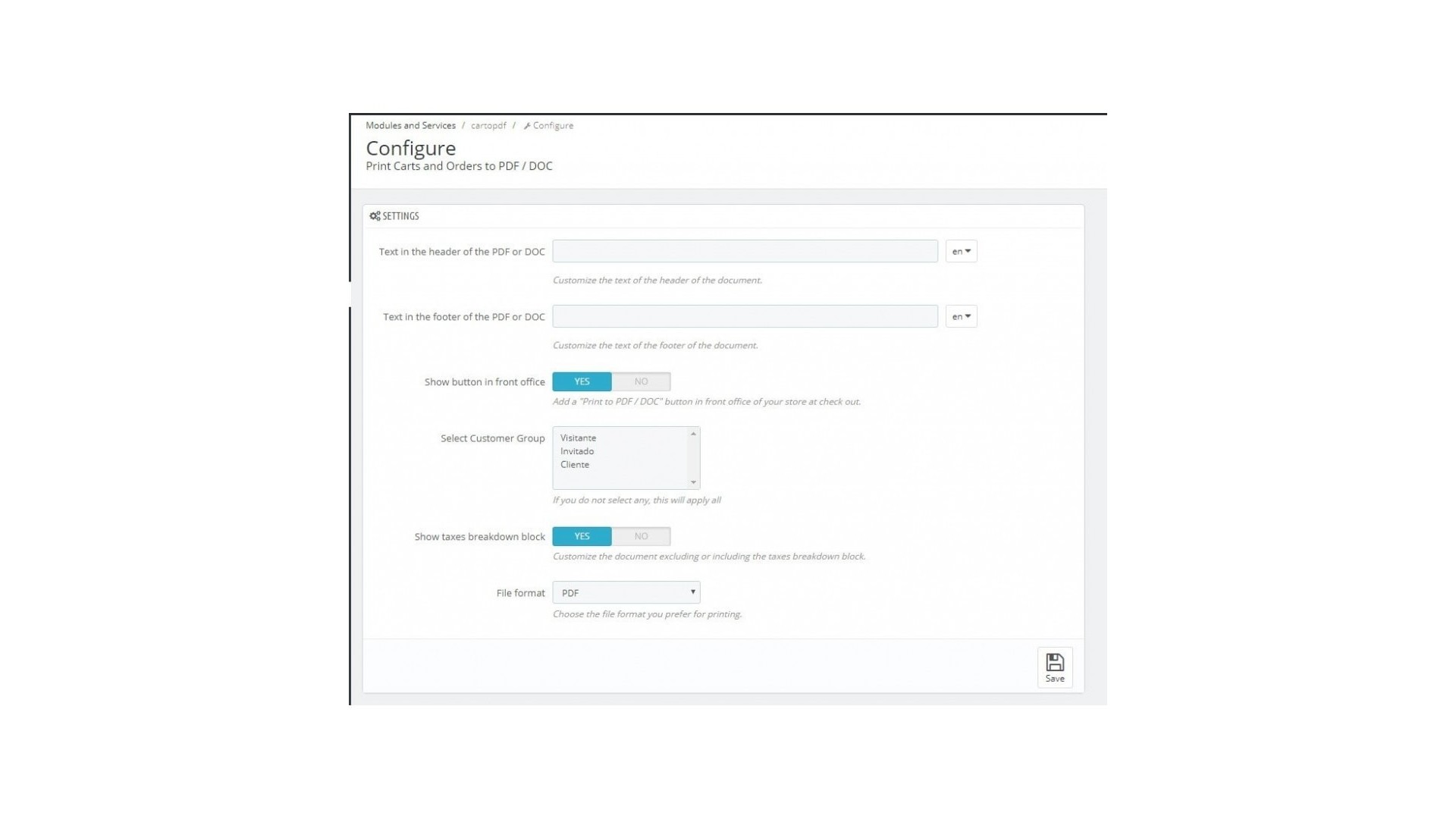 Funkce pro generování PDF a DOC z nákupního košíku