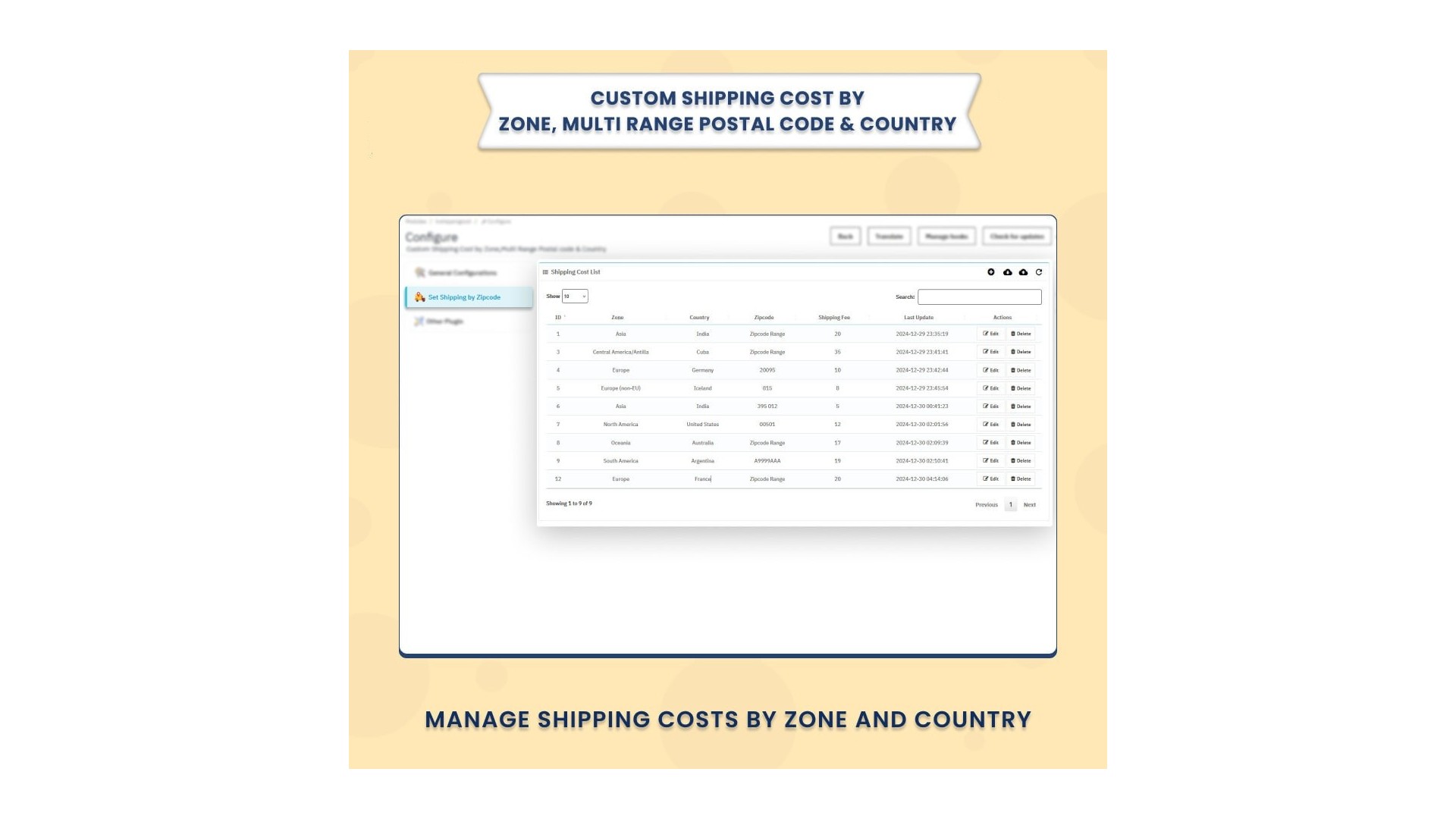 Funkce pro výpočet nákladů na dopravu podle zóny a PSČ