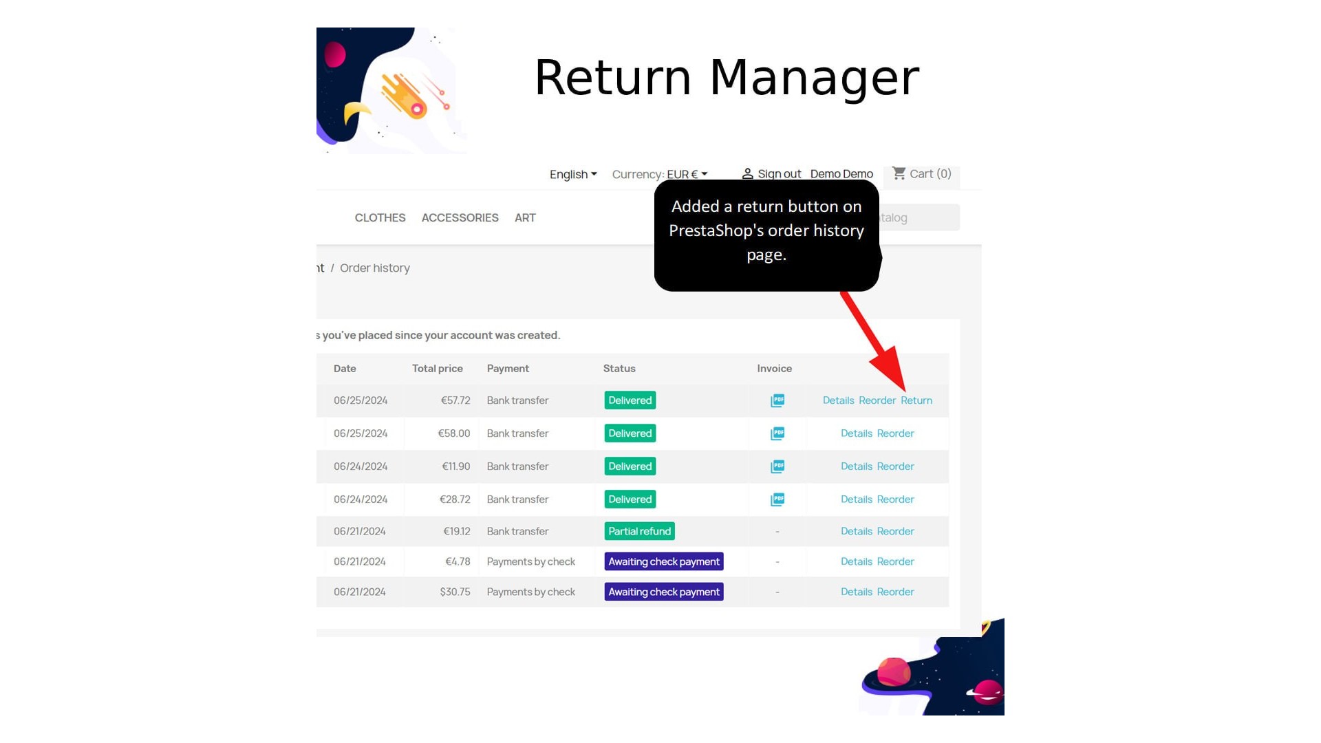 Jednoduchý manažer vrácení produktů s RMA funkcí